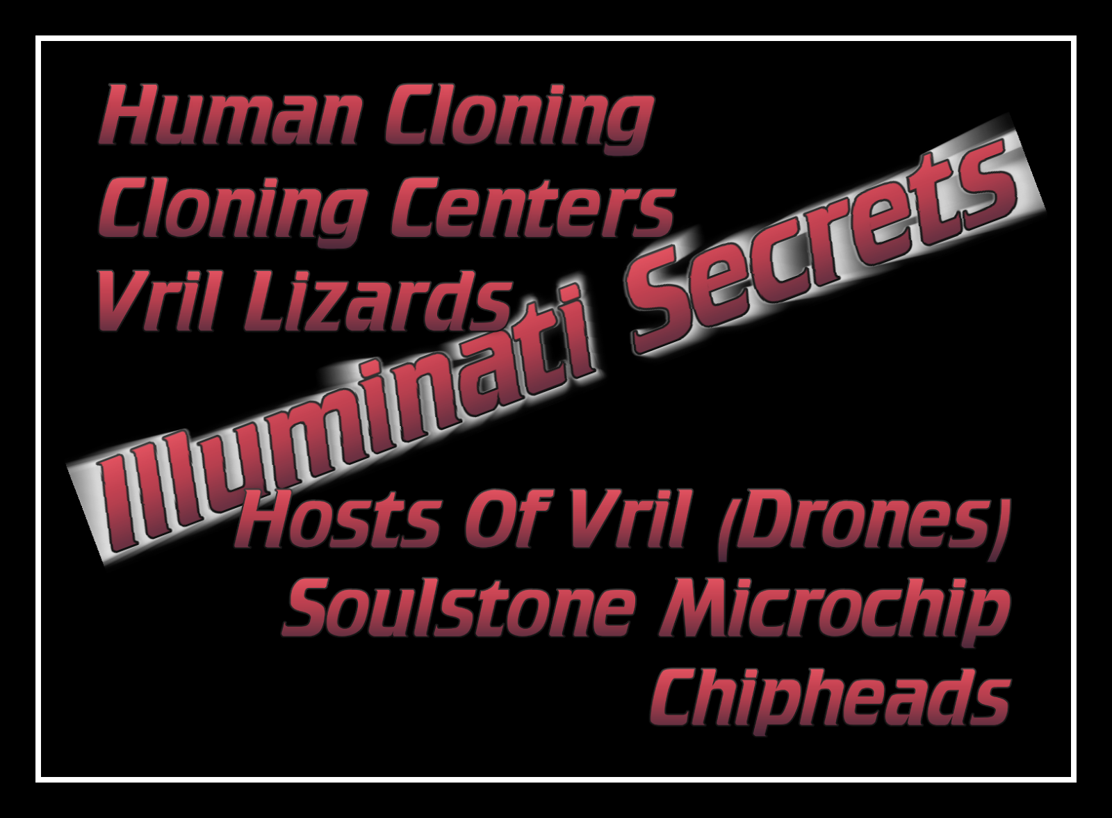 All it takes is a push of a button on computer at the cloning center to unrepress your memory, and depending on how much content they sometimes have to gradually give you the back memories or you go nutsy. they WANTED me to expose vrill n drones... and cloning... but wanted to not kill all vrill n drones or shut down all cloning centers and sugarcoat events that transpire there... play the savior but help them run the world from a "shadow seat" in the stands of the cloning center, where the same stuff would happen but world would look to me as savior n stuff... they wanted to go along with prophecies and use me to control the population somewhat and try to institute rules they want and like be a religious figurehead.... now \i had been memory repressed for like 25 years since age 5 and really wanted to get out and get help, get it all stopped... contd---> they could somehow tell what your thinking sometimes,... they truth serum ya and scan yer brain with tech... now after watching murders and kids dyin eaten n stuff I knew I HAD to find a way... was imperative... but they knew how to get the truth... so kind of like stockholme syndrome, (love your captors) I had to half convince myself that I liked them, the organization and world leaders were my friends and surrogate family... I had to convince myself of this, (and it was difficult) because they test you so much to see if youll talk,... they dont care if you do its just they dont want to have to kill you... SO singing to them, slappin 5 with Moammar Ghaddafi there... all of them... I held them in awe with the songmaking ability,... I had to devise a way... cuz no one escapes... but I would find a way... cont'd--->they didnt want to kill me, they wanted to use me for their plan... but they wanted me IN on the plan... they wanted no complications.... SO was so monotonous... tested nightly for a while... had to psychologically convince myself they were my surrogate family... fool myself almost like... was the only way... they unrepressed my memory... I got smarter in real life and as a clone there... the memory repression was like sapping my intelligence by like 20-25%... they call it an awakening... doesn't actually make u smarter, just gives you back smarts that are like withheld... think faster and clearer... before I had a haze on my brain that I thought everyone had... was there all the time so just was normal to me... haze is gone now... thats how it works. so found out all i needed to know, what it was who was in charge who ran stuff techs they had... \i'm like the worst curious george... when I figured I knew all neccessary info I let it loose... but didnt know where to go... beginning sucked... they were ready... only thing they dont have is internet... and theyre workin on that... they talk about anything and everything... see Brad Pitt is there.... Madonna is there.... and just about any super celeb u can think of is there... SO also the politicians are there, biggest world leaders.... this is where it went way haywire... politicians showing off power to pretty celebs... allowing celebs to add their political 2 cents worth... celeb feels smart, semi worldly powerful... and the politicians get to help make movie lines ideas and sometimes lines in songs... and feel "cool" like a celeb.... well it progressed... they upped the ante... oh its "cool" to be evil... oh he is way more evil than him... oh he's way evil look what he just did,... oh ya think THATS evil? look what I just did.... but i messed the plan up. they wanted to avoid prosecution... blame lizards n drones. kill off a few clones of "evil" world leaders to make it look good to the public, blow up a "few" cloning centers and have same status quo BUT have a Jesus savior like figure to play religious figurehead and have me help them assert more control over the "ignorant masses" lol I could NEVER do that... death first. but i told them I would... they believed me wholeheartedly... i was desperate to escape,... I was so convincing... serenading Elizabeth the cannibal demon queen, like I loved her... I convinced myself... acted well... the world was depending on me,... it was so movie like feeling... like judgement day... From an early age I felt like I had a secret mission from God to infiltrate them accumulate information and destroy them from the inside out... everyone was scared... played evil... it was obvious... and it was because of Vrill. n drones... whoever was evil went far in life... so they all went super evil... and the lucifer stuff was like a stupid taboo club... oooh against the church oooh.... it was more taboo years ago when the church was more popular... now with finding out cannibalism gives u human equivalent of mad cows disease and inbreeding makes yer gene pool damaged they know lucifer stuff is all lies... lucifarian stuff sez cannibalism n inbreeding makes you powerful... killing n raping kids too... killing your own firstborn son in a ritual sacrifice... they know its all lies... they fear real God now.... recently said they realise their mistake... with prophecies and stuff... they said they didnt realize it but they are the fornicators mentioned in the Bible... and with all the metaphors in prophecies and stuff (there are a lot) they say they are afraid of actually going to whatever the lake of fire is... they fear the end of the world,... and Elizabeth fears a terrible end... sez her n Phillip get it bad... mentions them by name n everything... the great duke , even sez phillips name... and the harlot being Elizabeth,... her and her corrupted lords of filth and perversion n stuff... so NOW they wanna give up Vrill and come clean but they dont wanna get killed themselves... people been hinting about the parasites n stuff in movies n song your whole life... hoping someday it'd be cleaned up. Secret of Vrill is no longer a secret... It's all coming together nicely,... all comes clean in the wash.